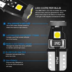 High Brightness: Built-in high-brightness 3030 SMD LED Chips, 300% brighter than your original halogen bulbs and 100% than the 4014 SMD LED Chips. All LED lights are built in Constant Current IC ensures a lifespan of up to 50,000 hours, low power consumption.