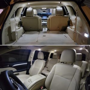 Package Includes: 2 Map Lights, 4 Dome Lights, 1 Glove Box Light,1 Trunk Cargo Area Lights,4 Vanity Mirror Lights, 2 Courtesy Lights and 2 License Plate Lights (16pieces LED bulbs total and 1pcs free install tool).