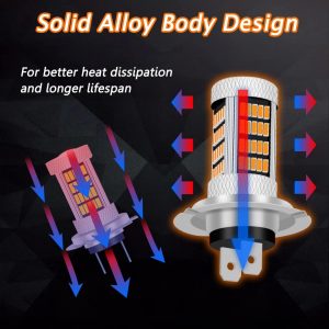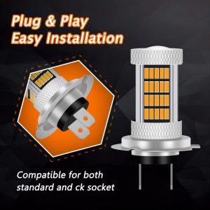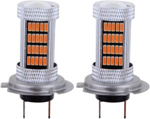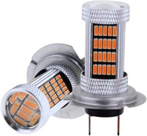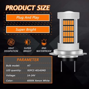 300% Brighter Than Halogen: Each H7 LED fog light bulb has equipped with high quality 92pcs 4014 LED Chips, 300% brighter than stock halogen. 3000K amber/yellow light, glass lens for better focusing light effect, 360 degree beam angle for maximum light output and further lighting distance.