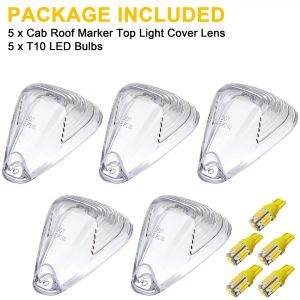 Package Contents: Includes 5 clear cab roof lights (LEDs only); simply rotate 180 degrees if the light does not turn on.