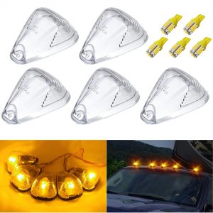 GLOFE Amber Lens 5pcs Cab Marker Roof Running Top Lights with T10 194 168 W5W 2825 Yellow Amber LED Bulbs Replacement for Hummer H2 SUV SUT 2003-2009