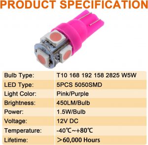 Fitment: T10 instrument panel light bulb is easily integrated as a replacement for the following bulb model numbers: T10, T15, 194, 168, 158, W5W 161B, 168, 168A, 168NA, 175, 192, 193, 194, 194B, 194G, 194NA, 194R, 2821, 2825, etc.