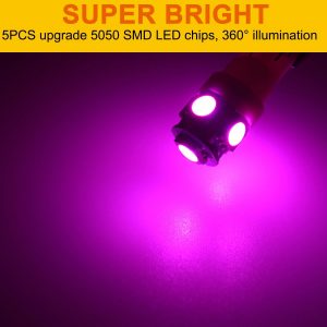 Wide Application Range: T10 Gauge Cluster Lights Bulbs with Twist Lock Socket are ideal for use in Truck Gauge Cluster Indicator, Speedometers, Odometer, and Tachometer. T10 LED Bulb also fits well for car interior map lights, dome lights, dashboard lights, license plate lights, trunk lights, etc.