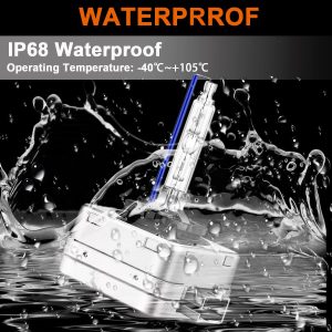 6000 Hours Lifespan: Premium alumium lamp body and glass tube, makes Our HID headlights more durable than the others. IP68 waterproof keeps dusts and liquids out, enables you to drive with confidence in all environments.