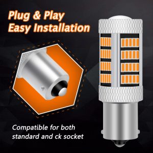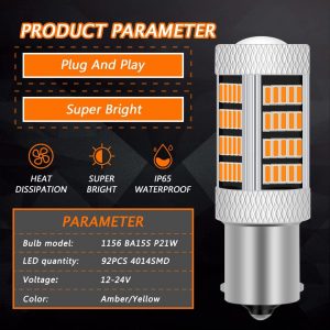 GLOFE High Power 92smd LED Bulbs 3000K Amber Yellow 1156 P21W 7506 BA15S Front Rear Turn Signal Blinker Marker DRL Daytime Running Light LED Bulb Lamp Replacement for Cars,Trucks, SUVs, Vans