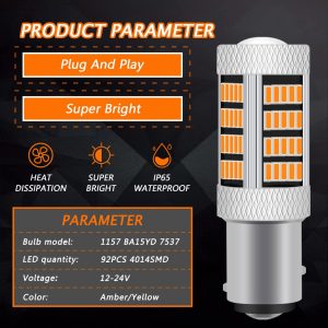 Be the first to review “GLOFE High Power 92smd LED Bulbs 3000K Amber Yellow 1157 2057 2357 7528 BAY15D Front Rear Turn Signal Blinker Marker DRL Daytime Running Light LED Bulb Lamp Replacement for Cars,Trucks, SUVs, Vans”