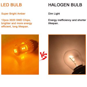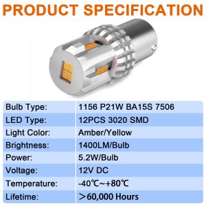Unparalleled Brightness Enhancement: Experience a remarkable 400% improvement in brightness with this set of 2 Amber Yellow 1156 LED bulbs. Featuring 12 PCS high power 3020smd chipsets, these bulbs consume only 5.2W/PC while providing four times the brightness of the original bulb. Enjoy an ultra-bright and energy-saving solution that offers a wider and clearer view during nighttime driving.