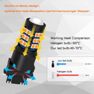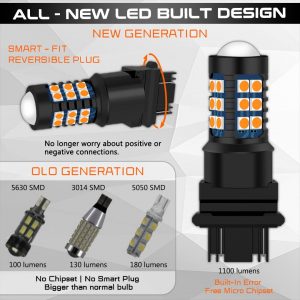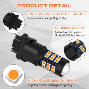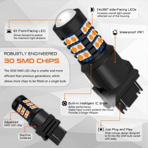 GLOFE LED Turn Signal Light Bulbs 3157 LED Bulbs Amber Yellow 400% Brighter 3156 3056 4057 4157 LED Bulb with Projector for Blinker Parking Side Marker Brake Lights, Pack of 2