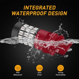 (Set of 2 Bulbs) Voltage: 12V – 14.8V. Color: Pure red. LED Chips: Each 3156/3157 LED red bulb is equipped with 39 pieces high quality, high power with high performance led chips per 3156 3157 LED bulb —360 degree full angle illumination with projector lens design