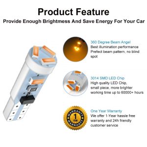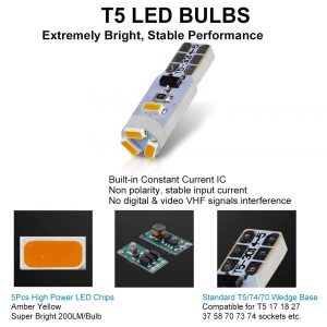 GLOFE T5 37 74 2721 LED Bulbs Amber Yellow with Twist Lock Socket, Canbus Error Free PC74 PC37 882 12V Dashboard Instrument Panel Lights Gauge Cluster Dash Indicator LED Light Bulbs, (Pack of 10)